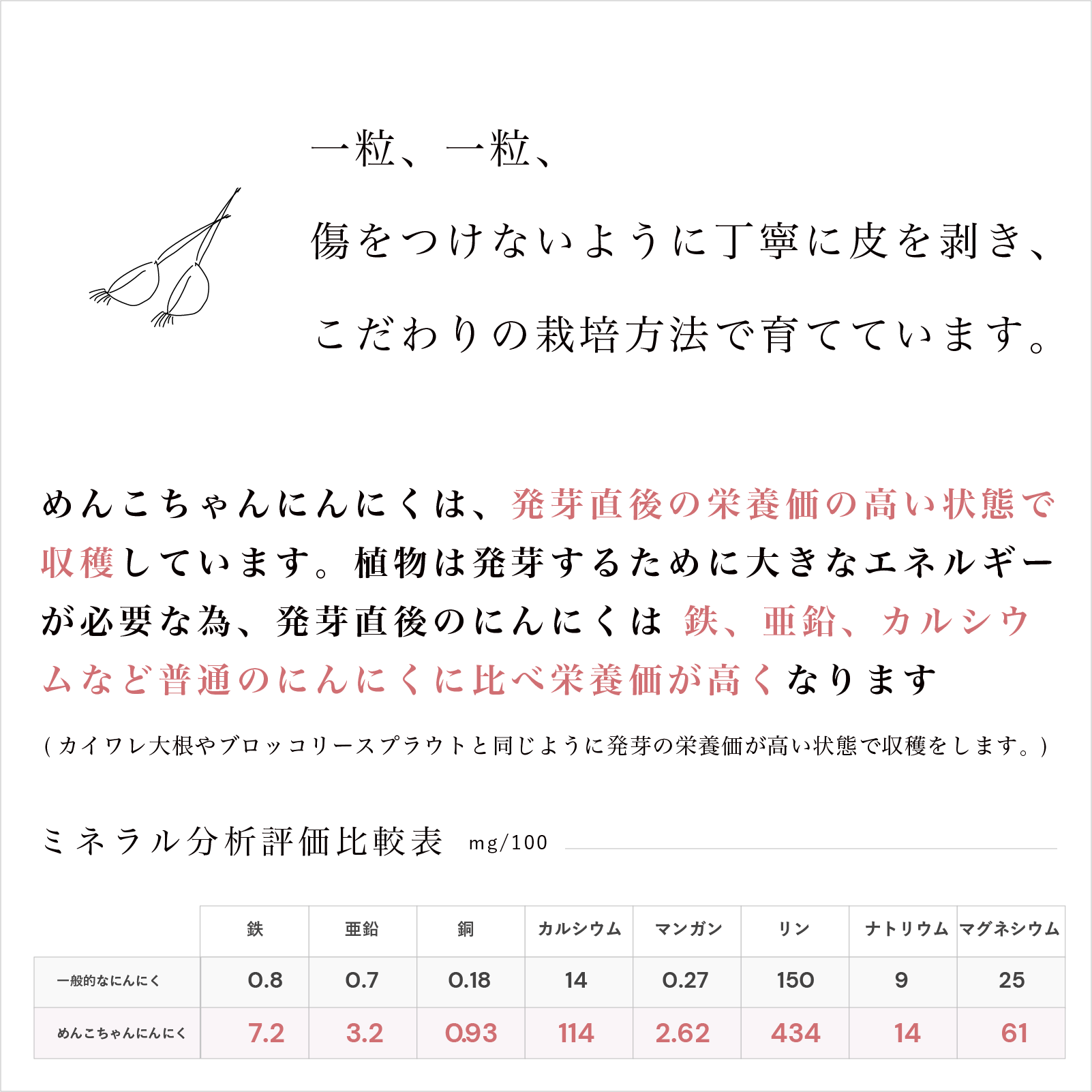 ひげから芽まで食べられるにんにく「めんこちゃんにんにく」です。